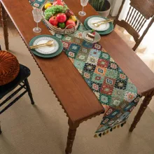 This table runner is more than just a decorative piece—it’s an essential addition to your dining space. Whether you’re hosting a family dinner, a holiday feast, or a casual gathering, the Vintage Geometric Jacquard Table Runner brings an air of sophistication and warmth to your table. The carefully crafted jacquard weave and tassel accents create a timeless look that complements both traditional and modern dining settings. Perfect for adding personality to your dining room, it works wonderfully for various occasions such as birthdays, anniversaries, or even casual everyday meals.