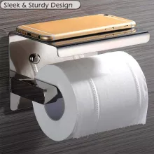 Upgrade your bathroom with the perfect combination of style, strength, and smart design. This wall-mounted stainless steel toilet paper holder with a built-in phone shelf is more than just a bathroom essential – it’s a modern convenience that keeps your space organized while adding a polished, sophisticated touch. Made from premium-grade stainless steel and finished in a mirror-like polished chrome, it’s designed to shine for years without losing its luster.