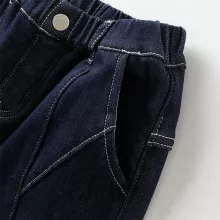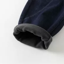 These jeans are designed with practicality and durability in mind. The knitted fabric provides flexibility, ensuring a comfortable fit while allowing your child to move freely. The trousers feature a velvet-thickened inner layer for extra warmth and a casual straight-leg design that gives a relaxed look. Without any rope ties, they have a clean finish that makes them easy to wear and style.