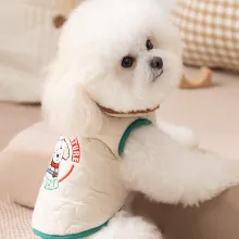This pet coat is more than just cute—it’s practical. The snap-button closure makes dressing your dog quick and hassle-free, while the two-legged design allows for natural movement. Its thickened cotton padding provides superior insulation, keeping your pup warm even on frosty walks. The light beige color and cartoon print bring a fashionable flair, so your pet can look adorable while staying comfortable.