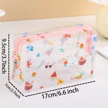 Make a splash with this adorable waterproof cosmetics bag that keeps your essentials safe and dry while showing off your summer vibe! Measuring 6.6″ x 3.7″ x 2.7″, this crystal-clear PVC pouch features cheerful fruit prints that scream vacation fun. The perfect companion for beach days, poolside lounging, or festival weekends where spills and splashes happen.