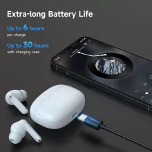 • 30 hours of battery life with the charging case, and up to 6 hours on a single charge