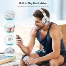 Comfort meets endurance with ultra-soft protein leather earcups, memory foam padding, and an adjustable headband that adapts to your unique fit. The 90° rotating earcups make them easy to pack for travel, while the lightweight build ensures you can wear them for hours without discomfort. A single charge powers up to 35 hours of playtime, and with fast Type-C charging, you’ll be back to listening in no time. For even longer sessions, simply connect the included 3.5mm audio cable.