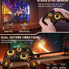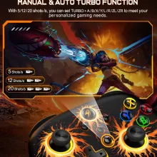 This controller is more than just looks—it’s engineered with performance in mind. Enjoy smooth wireless connectivity for Switch, iOS, and Android, or a wired connection for PC and Steam gaming. Built-in vibration feedback and motion control add another layer of immersion, while programmable back buttons and adjustable turbo functions let you fine-tune your gameplay for maximum advantage.