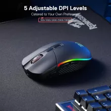The ultra-fast 2.4GHz wireless connection ensures smooth, lag-free performance within a range of up to 30 feet, giving you the freedom to move without any signal drops. Equipped with a powerful optical sensor, it offers up to 10,000 DPI for pinpoint accuracy and lightning-fast tracking. Switch seamlessly between five adjustable DPI levels to suit your gaming or working needs, from ultra-precise sniping to rapid movement across large screens.