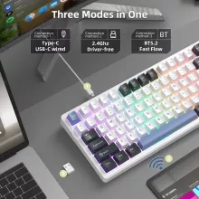 Stay connected your way with three versatile modes. Switch easily between Bluetooth 5.0, 2.4GHz wireless, or a Type-C wired connection. Connect up to three devices at once and swap between them instantly — perfect for switching from your PC to your tablet or smartphone in seconds.
