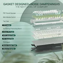 Unlike traditional screw-fixed keyboards, this model uses a gasket-mounted body for enhanced flexibility and reduced noise. Each keystroke feels smoother, cleaner, and softer, thanks to cushioned support that minimizes rigid sounds. Combined with noise-dampening layers, it creates a quieter, more enjoyable typing and gaming atmosphere.