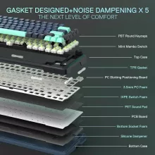 The innovative gasket-mounted design with custom Mint Mambo linear switches ensures silky-smooth keystrokes with a soft, cushioned feel. Multiple layers of noise-dampening foam reduce unwanted sound, making every press satisfyingly quiet and precise. Whether you’re gaming late at night or typing through the day, you’ll enjoy a crisp yet comfortable experience.