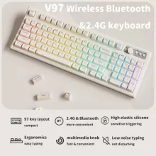 Upgrade your desk with a keyboard that blends modern performance with irresistible charm. This wireless 97-key creamy keyboard offers both Bluetooth and 2.4GHz connectivity, giving you the flexibility to use it with desktops, laptops, tablets, or even while gaming on the go. With its compact design, quiet keys, and vibrant RGB backlighting, it’s the perfect mix of functionality and style for gamers, students, and professionals alike.