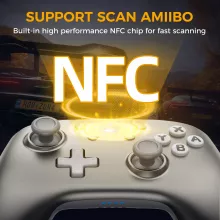 This controller doesn’t just look premium—it delivers premium performance. With NFC Amiibo support, you can unlock special in-game content instantly. The auto-fire function gives you an edge in fast-paced battles, while the non-linear trigger buttons provide accurate control for racing, shooting, and adventure games. A long-lasting rechargeable battery keeps you in the action, and when it’s time to power up, simply place it on the included charging dock for a quick, hassle-free charge.