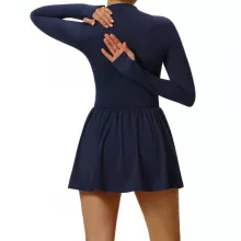 This sports dress is crafted with breathable, high-quality knit fabric that feels soft against the skin while providing flexibility for dynamic movement. The long sleeves offer light coverage, making it perfect for outdoor workouts in cooler weather, while the built-in pocket gives you the convenience of storing small essentials like keys or cards. With its sleek, solid-color design, this dress transitions effortlessly from workouts to casual wear.