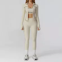 Our yoga suit is built to move with you, offering flexibility and support without sacrificing style. The breathable material keeps you cool, while the snug fit flatters your figure and ensures ease of movement. The long sleeve sports bra provides just the right amount of coverage, making it a versatile choice for all seasons.