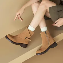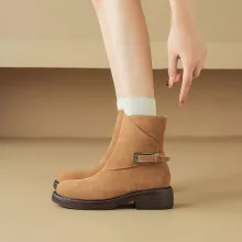 These boots are more than just footwear—they are a statement. The rich cow suede not only looks sophisticated but also provides a soft touch against the skin. The plush insole ensures every step feels cushioned, while the square heel supports long hours of wear without discomfort. Their ankle height is perfect for layering with different outfits, making them incredibly versatile for winter and early spring. What sets these boots apart is the seamless blend of style, warmth, and practicality, offering a fashionable look without sacrificing comfort.