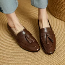 Discover the perfect blend of casual elegance and everyday functionality with these handcrafted women’s genuine leather slip-on moccasins. Designed with a timeless round toe, soft interior, and a charming fringe detail, these flats offer both style and superior comfort. Whether you’re running errands, enjoying a weekend stroll, or heading to a relaxed brunch, these shoes deliver a polished look without compromising on ease.