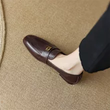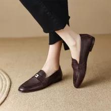 Made from premium cow leather, the upper feels supple yet strong, providing long-lasting wear. The inside features breathable pigskin lining, while the sheepskin insole adds a plush feel underfoot. A subtle 0.4 inch (1 cm) heel offers just enough lift to keep your feet supported, while the classic round toe ensures a roomy, natural fit. The sleek metal decoration on the front adds a touch of modern flair, making these moccasins versatile enough to pair with jeans, skirts, or even tailored trousers.