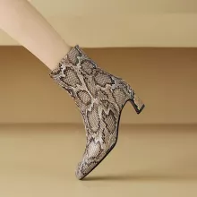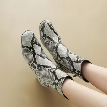 Women’s Genuine Leather Snake Print Ankle Boots with Chunky High Heels