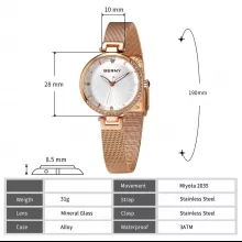 Refined, timeless, and effortlessly stylish — this women’s luxury watch is designed to add a touch of sophistication to your everyday look. With its delicate 1.1 inch case diameter and slim 0.33 inch thickness, it fits gracefully on the wrist without feeling heavy. The electroplated rose gold alloy case shimmers with elegance, while the stainless steel braided strap ensures both durability and comfort. Whether worn at work, for a night out, or during a casual day, this watch is the perfect finishing touch to any outfit.