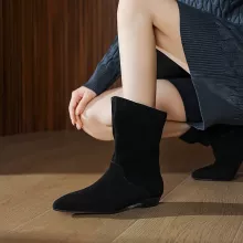 These ankle boots are perfect, keeping your feet warm without compromising on style. Their versatile design pairs beautifully with jeans, skirts, or dresses, making them a must-have for both casual streetwear and chic evening outings. Unlike other boots, these feature handmade craftsmanship with high-quality cow suede that not only looks luxurious but also feels soft and comfortable with every step. The low heel makes them ideal for women who want to stay stylish while being on their feet all day.