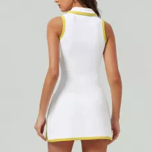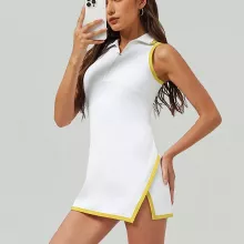 This athletic dress blends functionality with fashion, making it perfect for warm-weather sports and casual wear. The half-zipper front with a flattering lapel collar adds a touch of sporty elegance, while the sleeveless cut ensures unrestricted arm movement. The above-knee length keeps you cool, and the quick-dry fabric wicks away sweat, keeping you fresh even during intense matches or workouts.