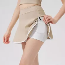 This skort isn’t just about performance—it’s about feeling confident while you move. The quick-dry, moisture-wicking fabric works as hard as you do, keeping you fresh and comfortable from start to finish. The built-in shorts give you freedom of movement without worrying about coverage, while the solid color design in khaki, cream, blue, pink, or black makes it easy to pair with any sports top.