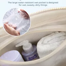 No more struggling to fit in your essentials. Measuring 16.5 × 7.5 × 11.8 inches, this duffel offers plenty of room without feeling bulky. Multiple compartments make organizing simple, while the dedicated PVC wet pocket keeps damp towels or workout gear separate from dry items. It’s the ultimate solution for staying organized on the go.