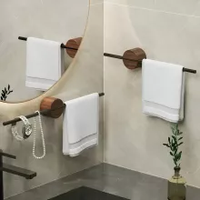 Maximize your bathroom’s storage potential while adding a sleek and modern touch to your decor with our 40/50cm Wood Towel Rack. Designed to combine functionality and style, this wall-mounted towel hanger brings both elegance and practicality to your home. Made with durable walnut wood and space aluminum, it’s the perfect solution for your bathroom or kitchen space.