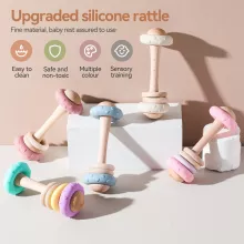 Give your little one the perfect start to playtime with our Wooden Baby Rattle with Silicone Teether Ring. Designed with love for curious little hands, this Montessori-inspired rattle combines the timeless charm of natural wood with the soothing relief of a soft, BPA-free silicone ring. Its smooth wooden handle is perfectly sized for babies to grasp, encouraging motor skill development while offering a safe, sensory-rich experience. The gentle rattle sound stimulates auditory awareness without overwhelming your baby’s sensitive hearing.