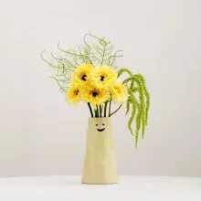 This yellow ceramic bud vase isn’t just a decoration—it’s a mood booster! The soft yellow hue creates a warm, inviting atmosphere, while the expressive faces carved into the ceramic bring an element of playfulness to your surroundings. Whether you’re using it to hold flowers, as a fun desk accessory, or as a centerpiece for your living room, it is guaranteed to be a conversation starter.