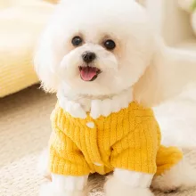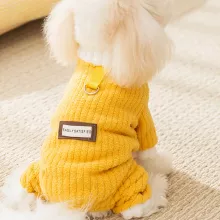 Wrap your little companion in comfort and charm with this Yellow Corduroy Dog Jumpsuit. Crafted with soft polyester corduroy on the outside and plush fleece lining on the inside, this four-legged coat is designed to keep your pup warm, snug, and stylish during chilly autumn days. The cheerful yellow color adds a pop of brightness to gloomy weather, while the simple cloth label detail gives it a touch of casual charm.