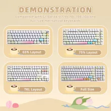 This 138-key set is fully compatible with a wide range of mechanical keyboards in different layouts, including 61, 64, 84, 87, 96, 98, 104, and 108 keys. It fits perfectly with popular MX-style switches such as Cherry, Gateron, Akko, and Kailh, making it the ideal choice for anyone who loves customizing their setup.